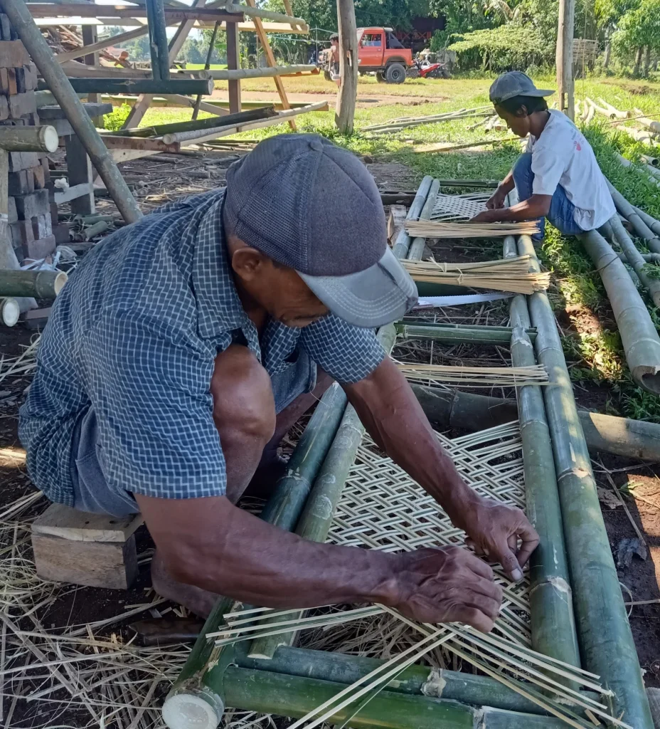Proses pengirisan bambu oleh pengrajin tradisional Bugis-Makassar